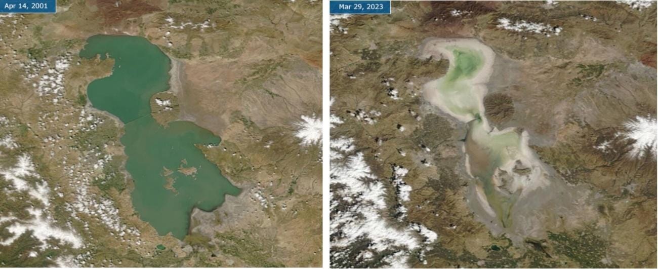 The shrinkage and desiccation of Lake Urmia represent severe ecocide, highlighting the destructive impact of unsustainable practices and climate change. Once the largest saltwater lake in the Middle East, Lake Urmia has lost more than 80% of its surface area since the 1970s. This environmental crisis is mainly due to unsustainable human practices and climate change, showcasing ecocide, the harmful destruction of ecosystems that affects biodiversity and people’s health and livelihoods.